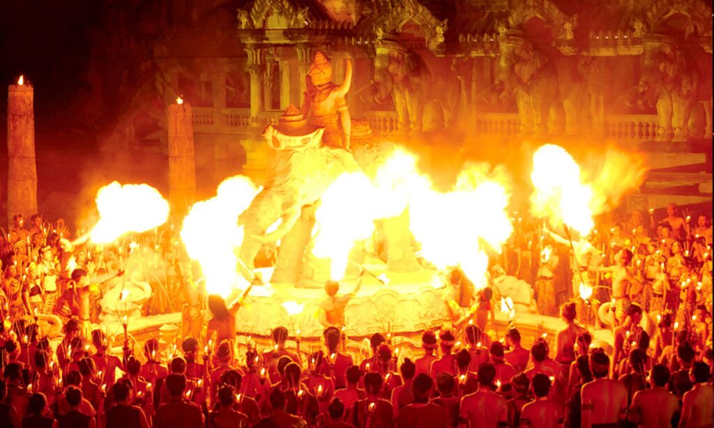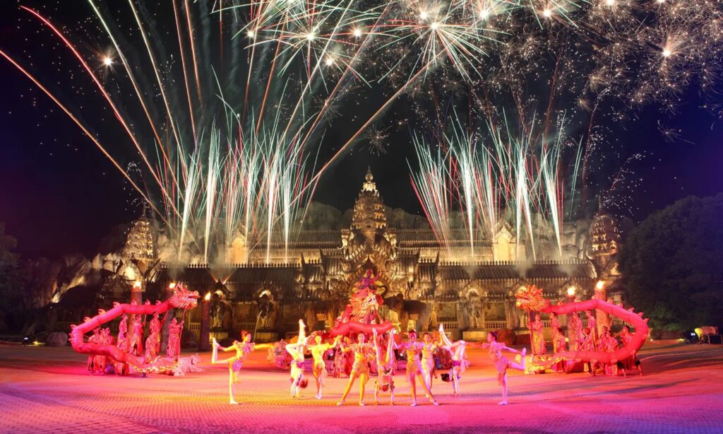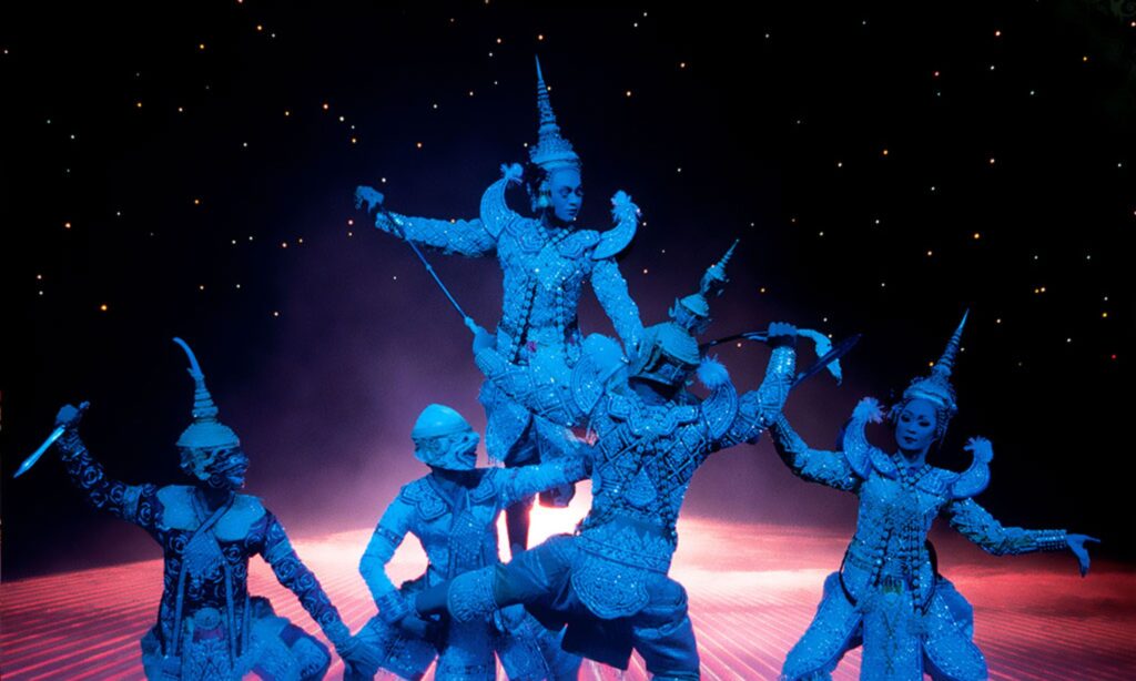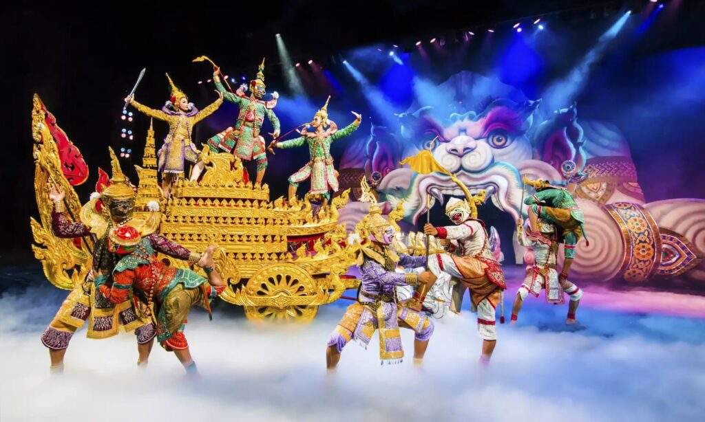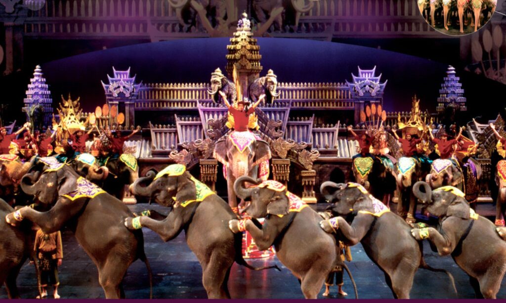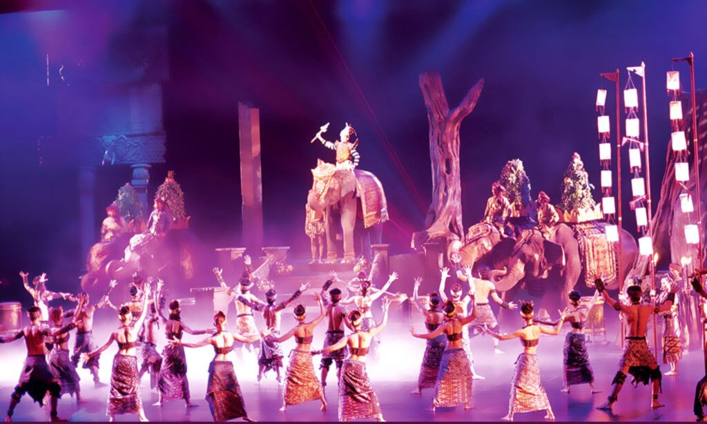 Traditional dances, acrobats, clowns, illusionists, an elephant show and amazing special effects are visible.