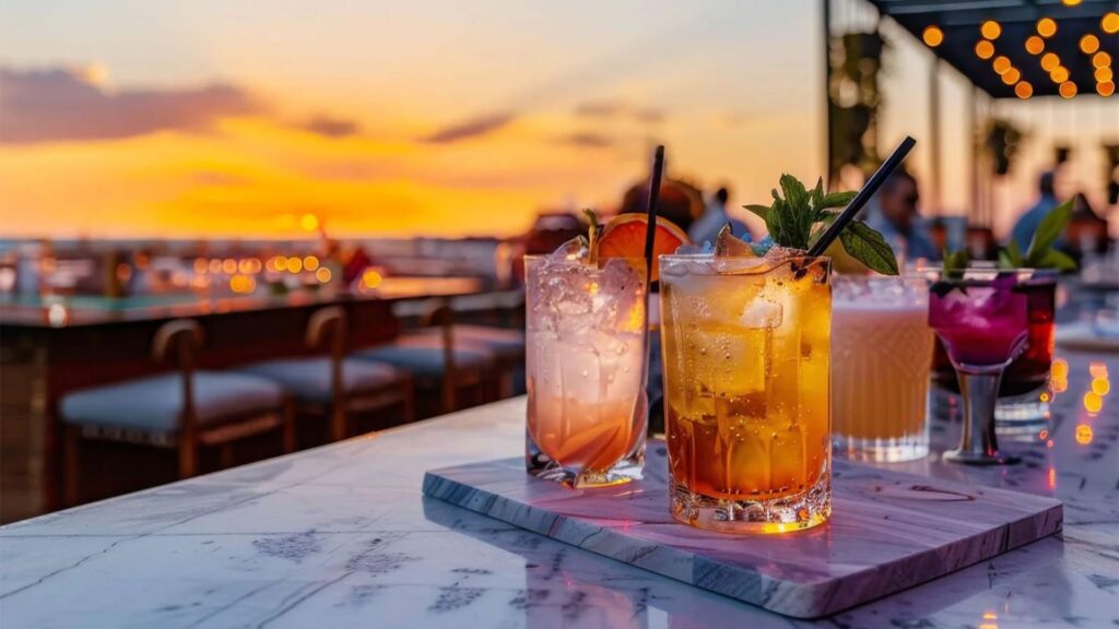 18:00 — sunset reception at the beautiful Kora Beach Sky Lounge on the roof of our hotel