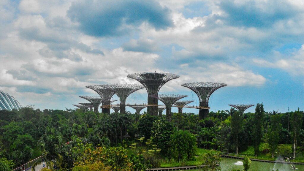 Then we head to Gardens by the Bay to walk past floating trees. We visit the Flower Dome and the Cloud Forest, where plants live in perpetual spring